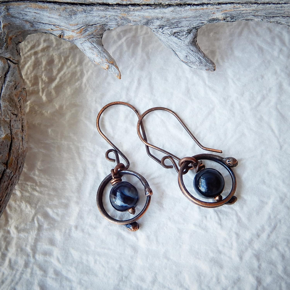 A sweet little pair of copper and black agate stone earrings made just for you! Wear them to work, shopping, out for a walk or to chill at home with a good book.